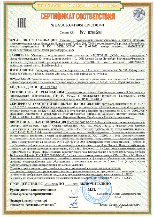 Eisenhof LS200 — легкий способ привести вещи в порядок без гладильной доски и лишних усилий. С ним вы быстро отпарите одежду к праздничному ужину, деловой встрече или прогулке по парку